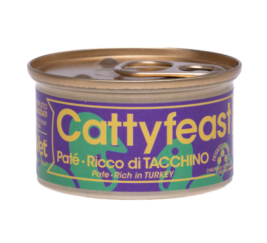 מזון רטוב מלא לחתולים מסורסים, עם 60% בשר אמיתי – הודו ודגים – המספק חלבון איכותי ותומך בבריאות השרירים. הנוסחה מבוססת על רכיבים טבעיים, ללא דגנים, עם רמות לחות אידיאליות לשמירה על מערכת שתן תקינה. מיוצר באיטליה באיכות גבוהה במיוחד, עם טעם ומרקם שמושכים גם חתולים בררנים.